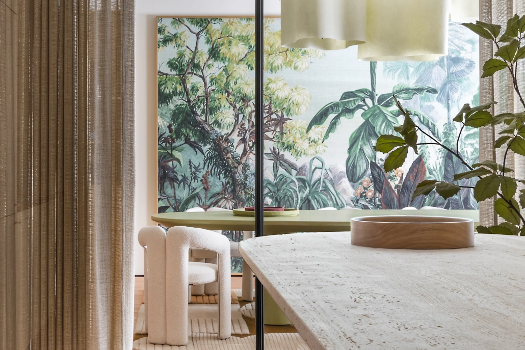 Las paredes se convierten en auténticas protagonistas gracias a colecciones como Melaky, que reinterpreta técnicas textiles artesanales; Icarus, una propuesta poética inspirada en plumas y formas orgánicas; o Décors & Panoramiques, murales envolventes que transforman cualquier superficie en una obra de arte de gran impacto visual.