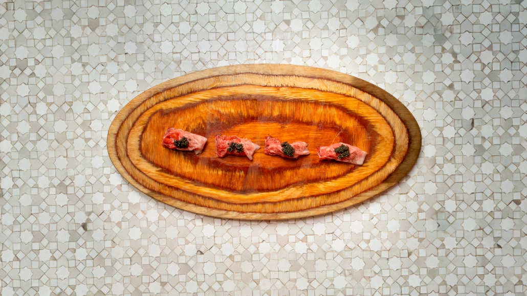 Más allá del comedor principal, Azahara esconde un espacio singular que se ha convertido en uno de los grandes atractivos del restaurante: Furtivo. Este espacio, situado en la planta inferior y concebido como un speakeasy gastronómico, acoge durante todo el año espectáculos de ronqueo de atún rojo salvaje.