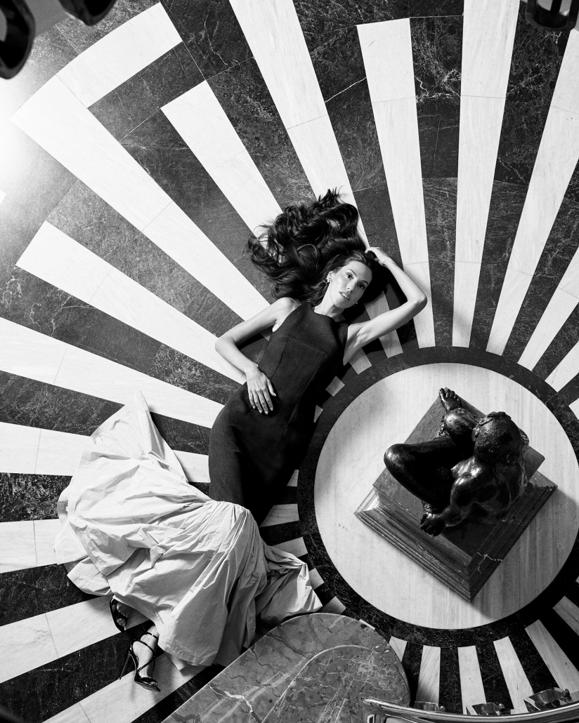 Eso de lo que habla se percibió durante las más de cuatro horas que este shooting se prolongó. Al igual que su sencillez, otra cualidad de la que puede hacer gala. Entre salidas y entradas al vestíbulo del hotel Intercontinental de Madrid, con vestidos que limitaban su zancada, no perdió la sonrisa en ningún momento, aceptando todas las indicaciones que llegaban desde fotografía. Su cercanía con el equipo que se arremolinaba a su alrededor también fue palpable, desmontando mitos que suelen asociarse a quienes se dedican a las redes. Incluso nos hizo partícipes de un pequeño inconveniente con su lavadora. “No soy competitiva, ni materialista, ni superficial, aunque a veces la gente puede imaginarlo por mi entorno”, comenta, al mismo tiempo que detalla qué es lo que realmente valora a día de hoy. “La calma, la felicidad cotidiana y la sensación de irse a dormir en paz. Con los años —añade— he entendido que eso es lo que de verdad importa: tener a los tuyos bien, disfrutar de lo que haces y vivir sin tanto ruido”.