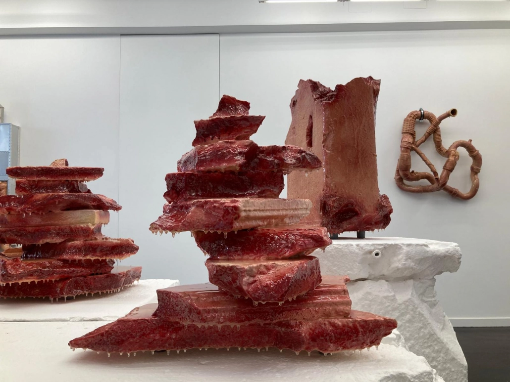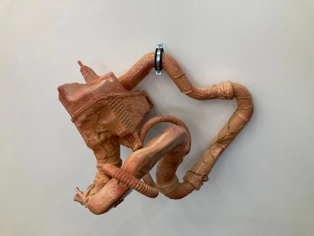 Sus piezas parecen órganos sin cuerpo, intestinos sin biografía, tubos que no conducen aire sino memoria. Son arquitecturas mutantes, entre lo orgánico y lo cyberpunk, entre el matadero y la fábrica. Y sin embargo, no hay morbo. Hay reflexión. Hay silencio.