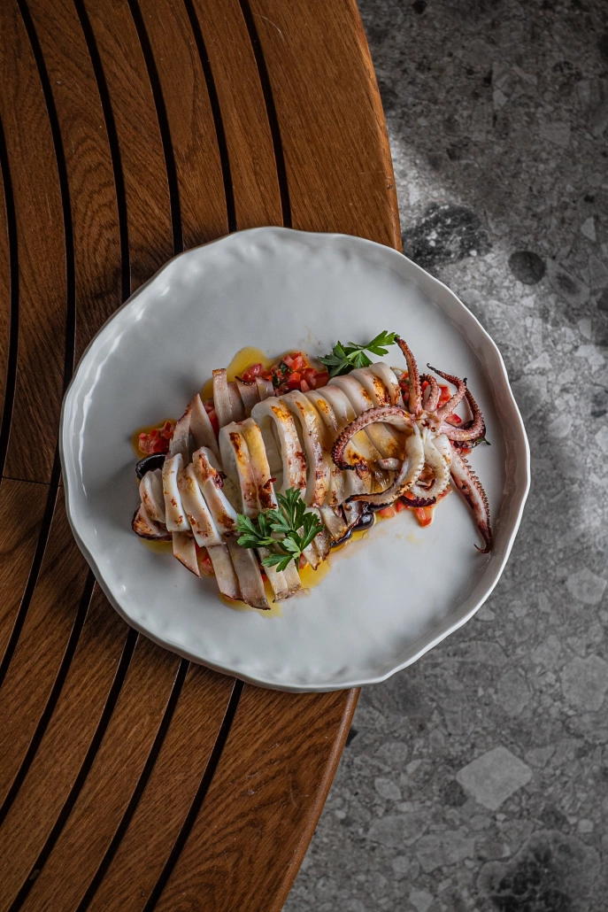 La carta de Brazza cambia cada semana, movida por el impulso creativo del chef. En ella se mezclan influencias del Mediterráneo, Sudamérica y Europa del Este en platos donde cada ingrediente se exprime al máximo.