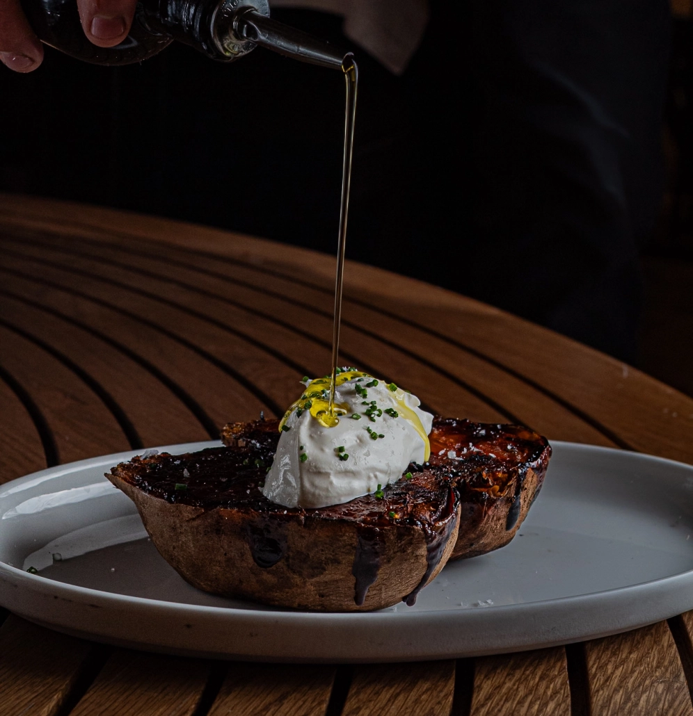 También hay espacio para pescados como el atún rojo con mango y soja o el salmón rosado con espárragos y salsa teriyaki. Las guarniciones, como los espárragos trigueros o el boniato a la chapa con crema agria, completan la experiencia.