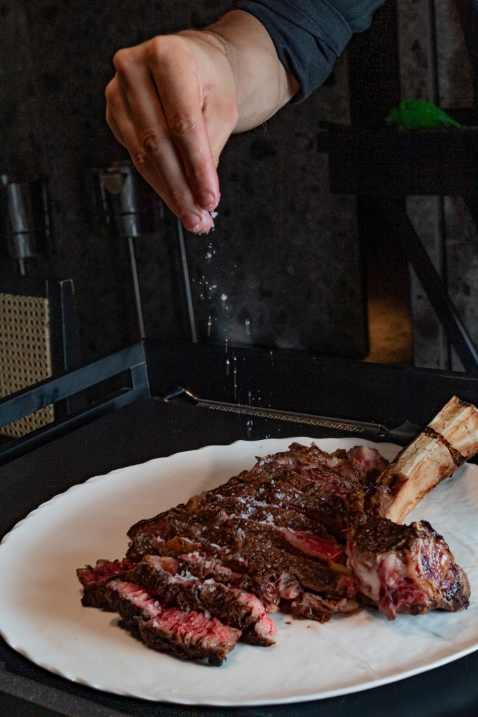 En Brazza, todo pasa por las brasas. Desde los portobellos con emulsión de patata trufada o el pulpo a la brasa con patatas baby hasta los grandes cortes de carne argentina y europea: entraña, ojo de bife, cuadril o chuletón, entre otros.