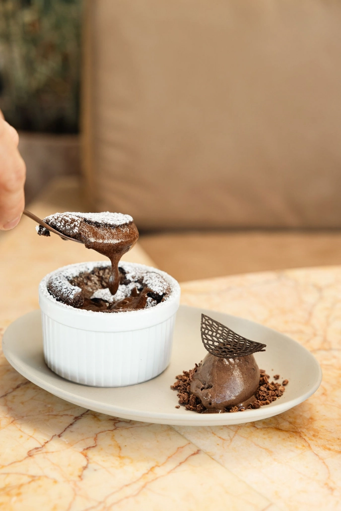 Mención aparte merecen las guarniciones, que aquí no se quedan en segundo plano. Las patatas fritas, un clásico que aquí no defraudará, funcionan como un valor seguro, y los tirabeques aportan un contrapunto más fresco, pero igual de apetecible. En los postres, el cierre mantiene el nivel, con opciones como las originalísimas frambuesas con chantilly o el suflé de chocolate. La propuesta se completa con una carta de vinos amplia y una selección de cócteles que invitan a prolongar la cita y las ganas de volver, una idea que merodeará tu cabeza nada más abandonar Makáá.