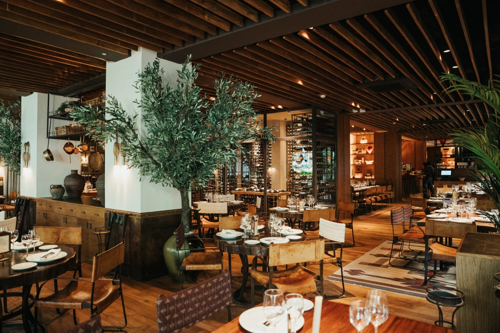 Maderas nobles, tejidos naturales, luz cálida. La parrilla se abre a la sala como un escenario, la barra invita a demorarse, la bodega vuelve a reclamar su protagonismo. El proyecto parte de una premisa clara: no cambiar lo que funciona, sino mostrarlo mejor. Y eso se siente desde el primer paso.